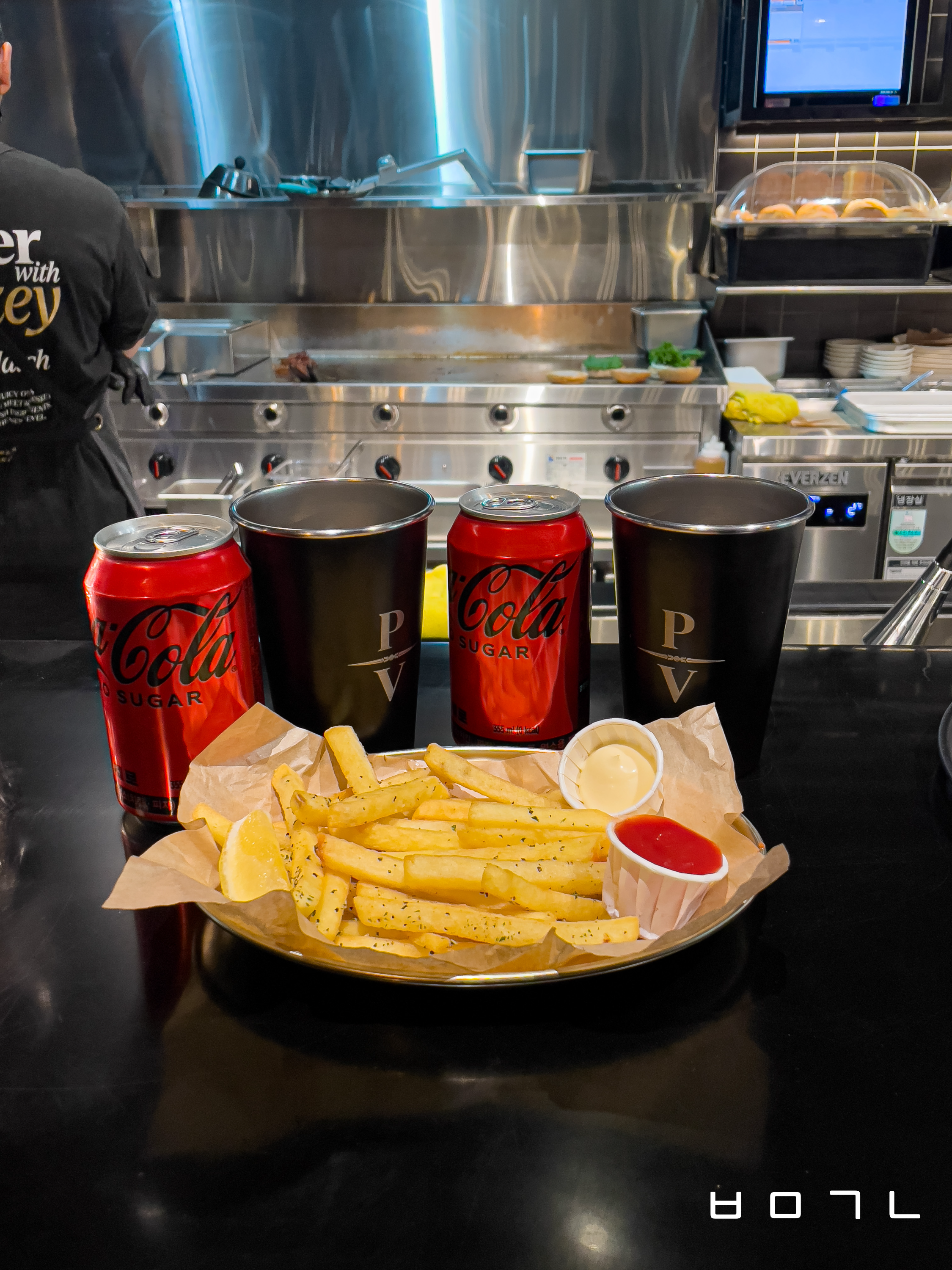 우선 버거가 만들어 나오기 전 감자튀김 먼저 나왔어요! 근데 여기서 조금 아쉬웠던 점은 포크 같은 식기류를 줬으면 하는 작은.. 바람이..