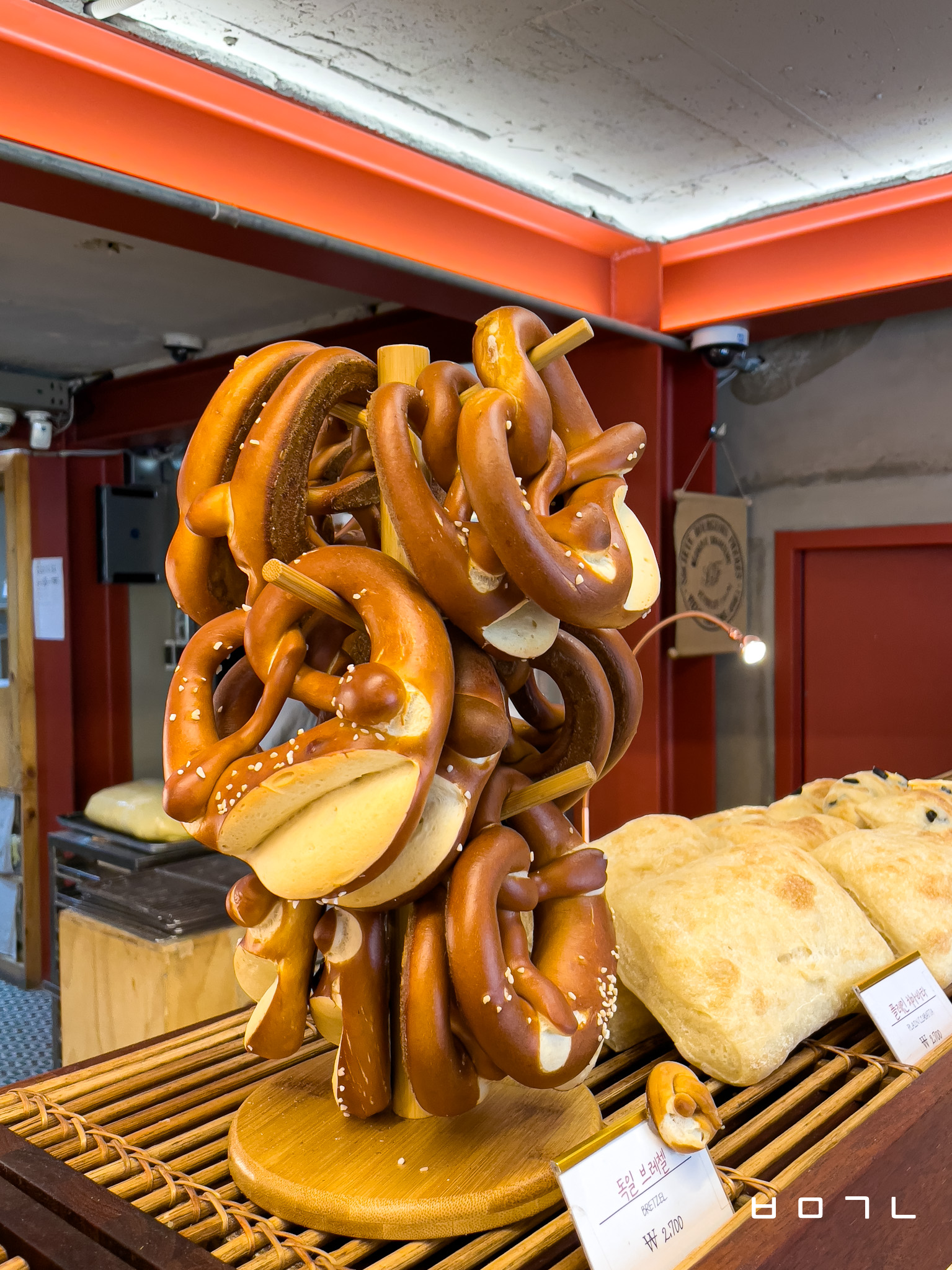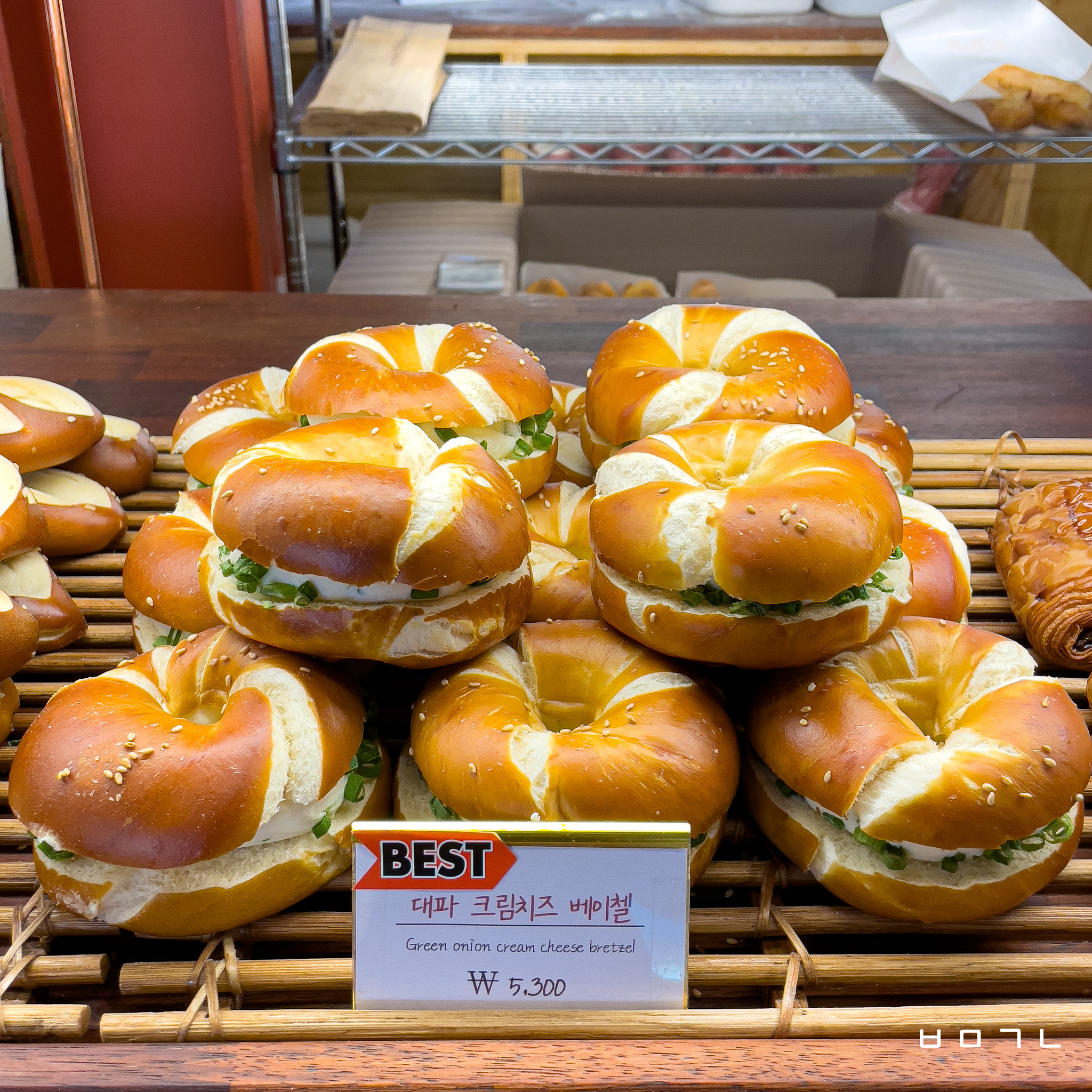 그냥 기본 프레첼이 약간 짭짤하고 고소하고 그러잖아요? 근데 저거는 그냥 진짜 고소한 빵입니다! 크림치즈 하나 구입해서