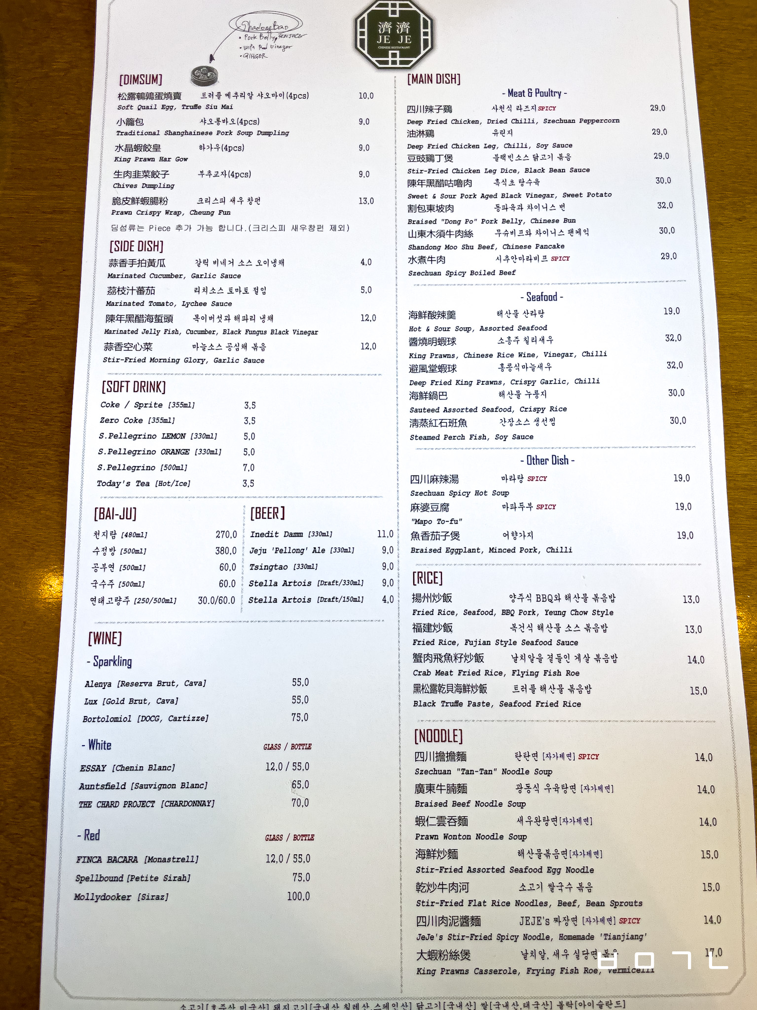 이 날 저희는 JEJE'S 짜장면과, 오이냉채, 탄탄면을 시켰었고, 위에 메뉴는 JEJE'S 짜장면입니다