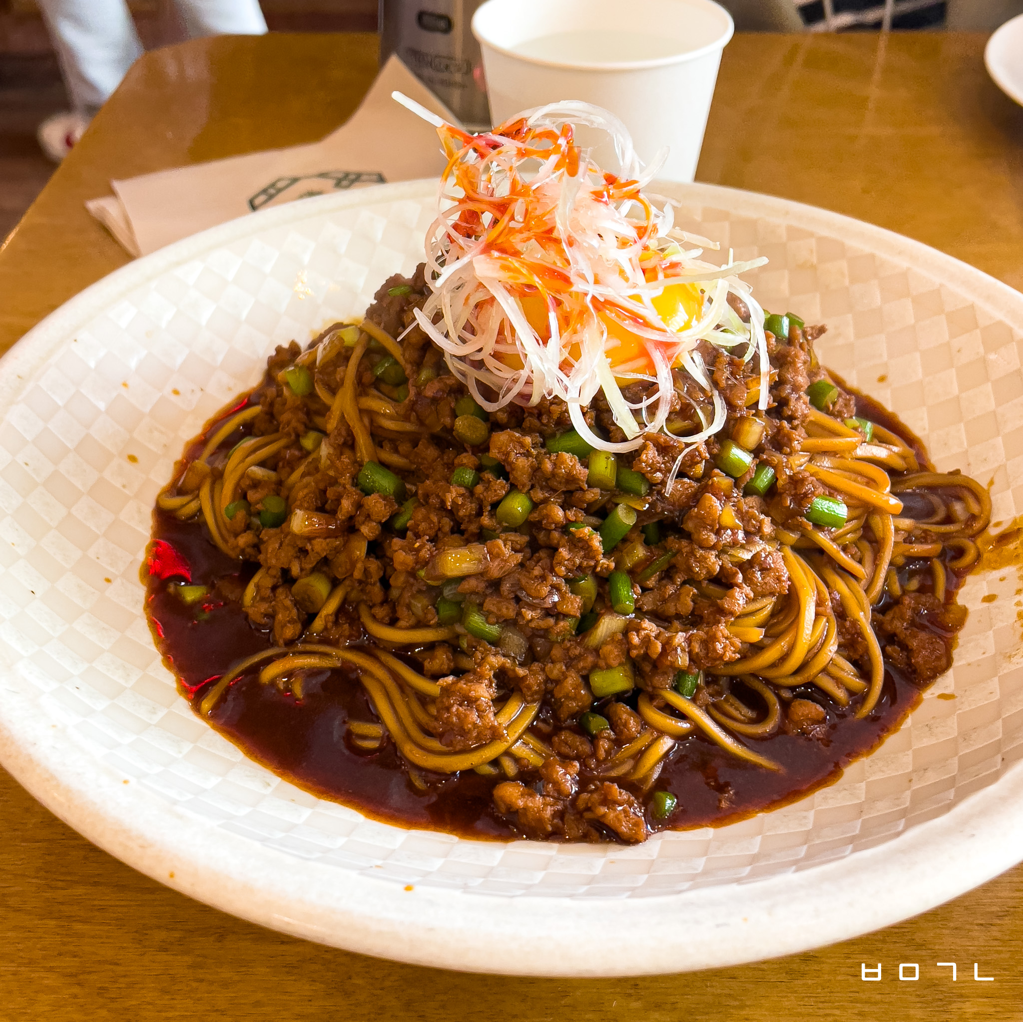 일반적으로 우리가 알고 있는 짜장면이랑은 아예 다르게 생겼고 특이한게 위에 노른자를 올려주더라고요!