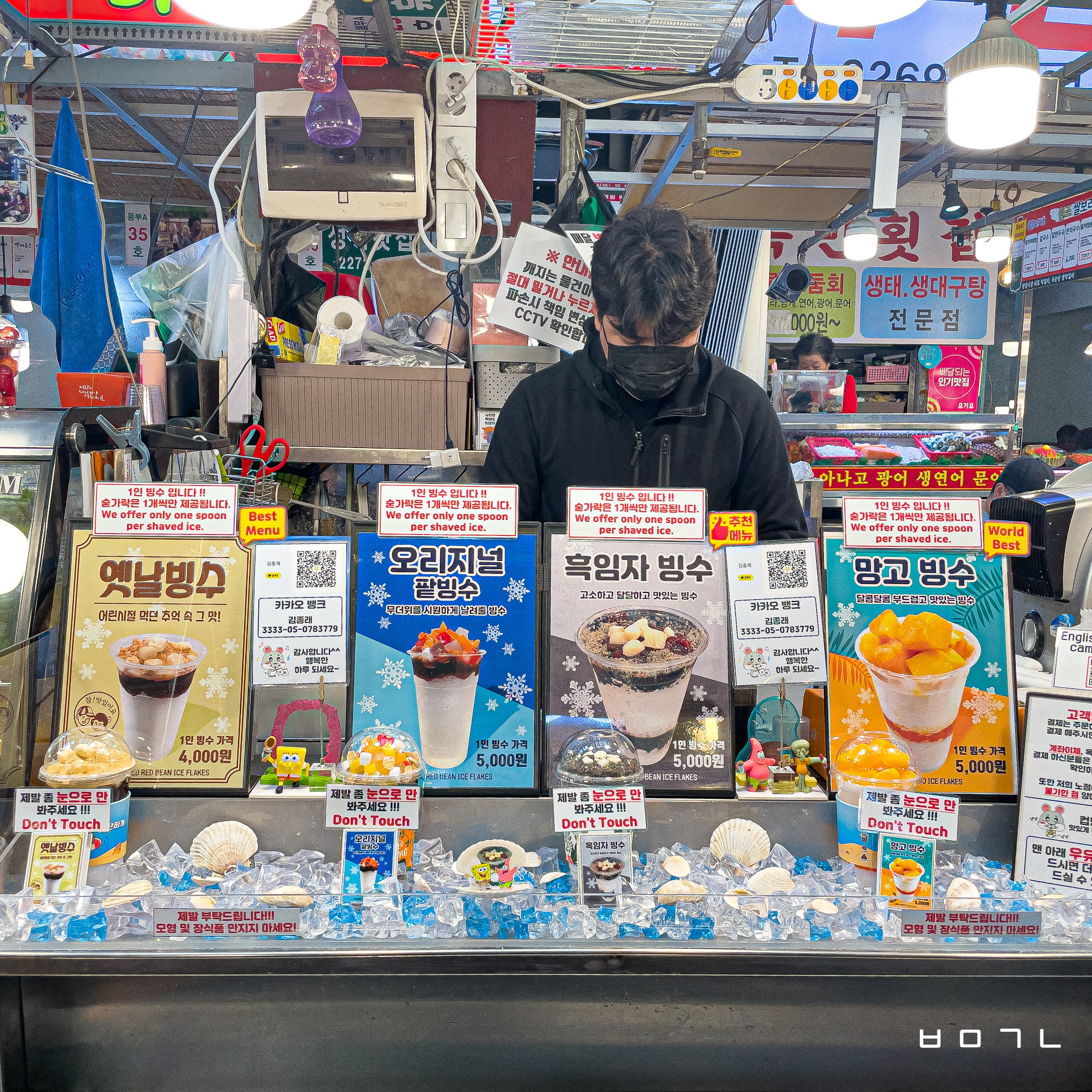 팥빙수 가게의 빙수 종류는 저렇게 4가지 밖에 없고! 저의 최애는 망고빙수입니다!