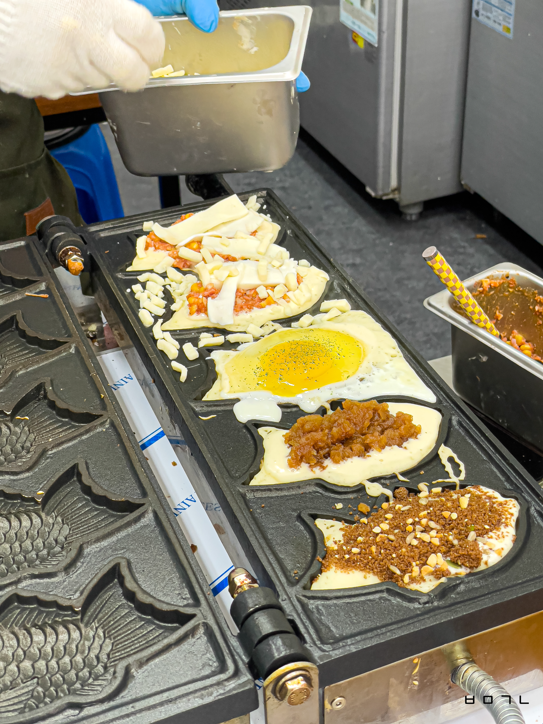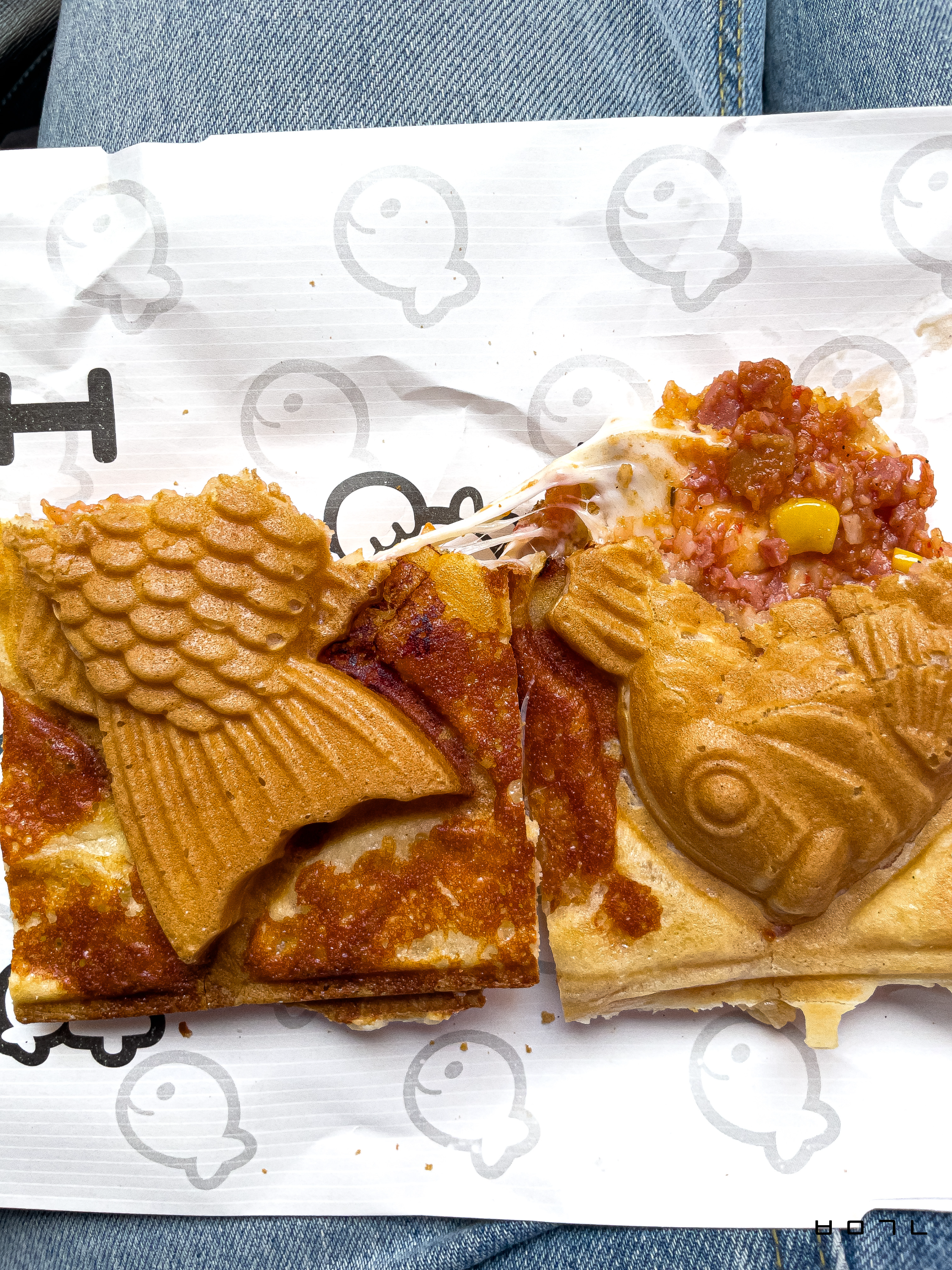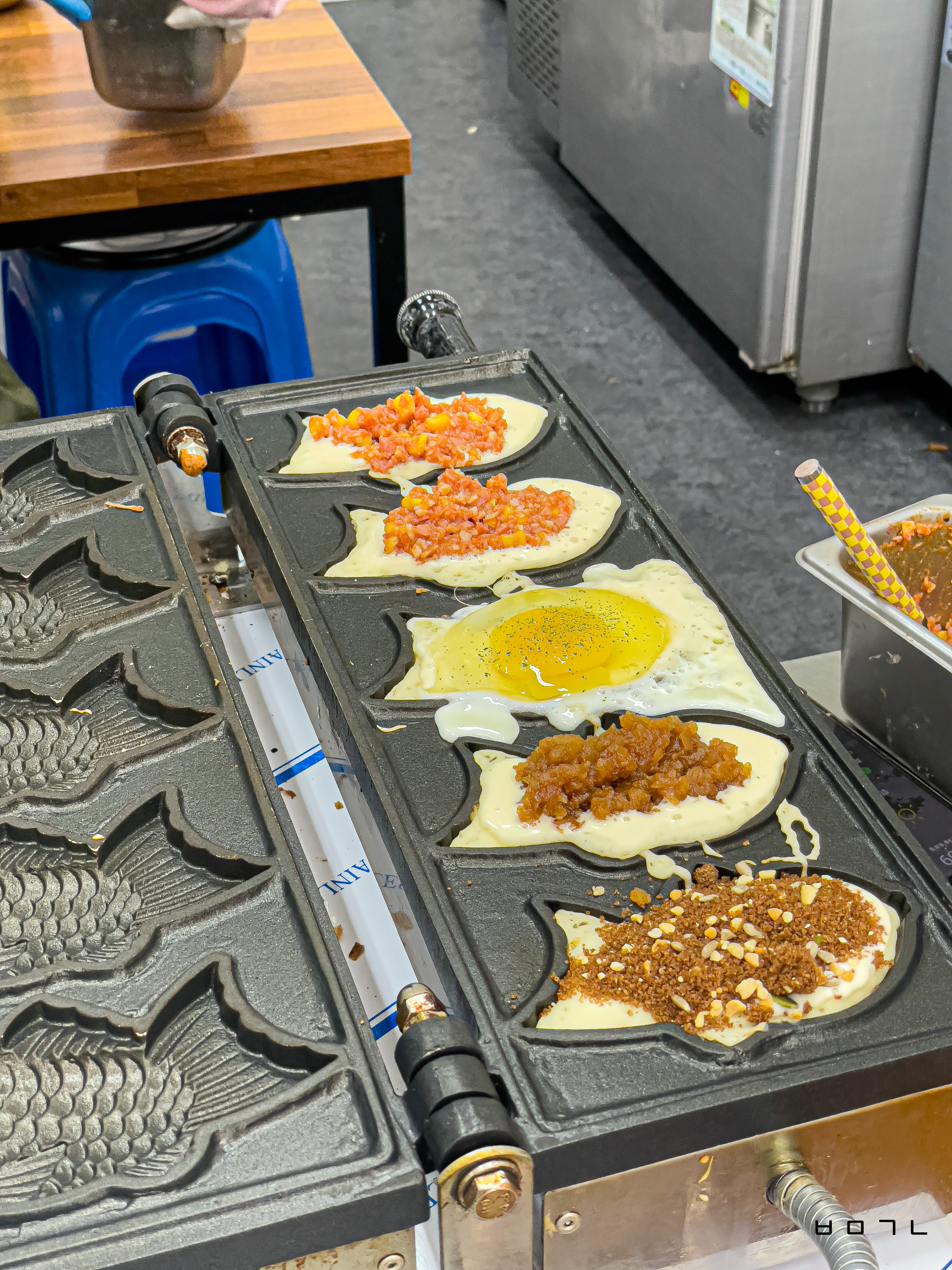 · 맵떡 치즈 : 붕어빵 안에 떡볶이와 치즈가 들어가 있는데! 은근히 매워여! 붕어빵이랑 쫀득한 떡이 이렇게 조화로운지 누가 알았겠냐거....