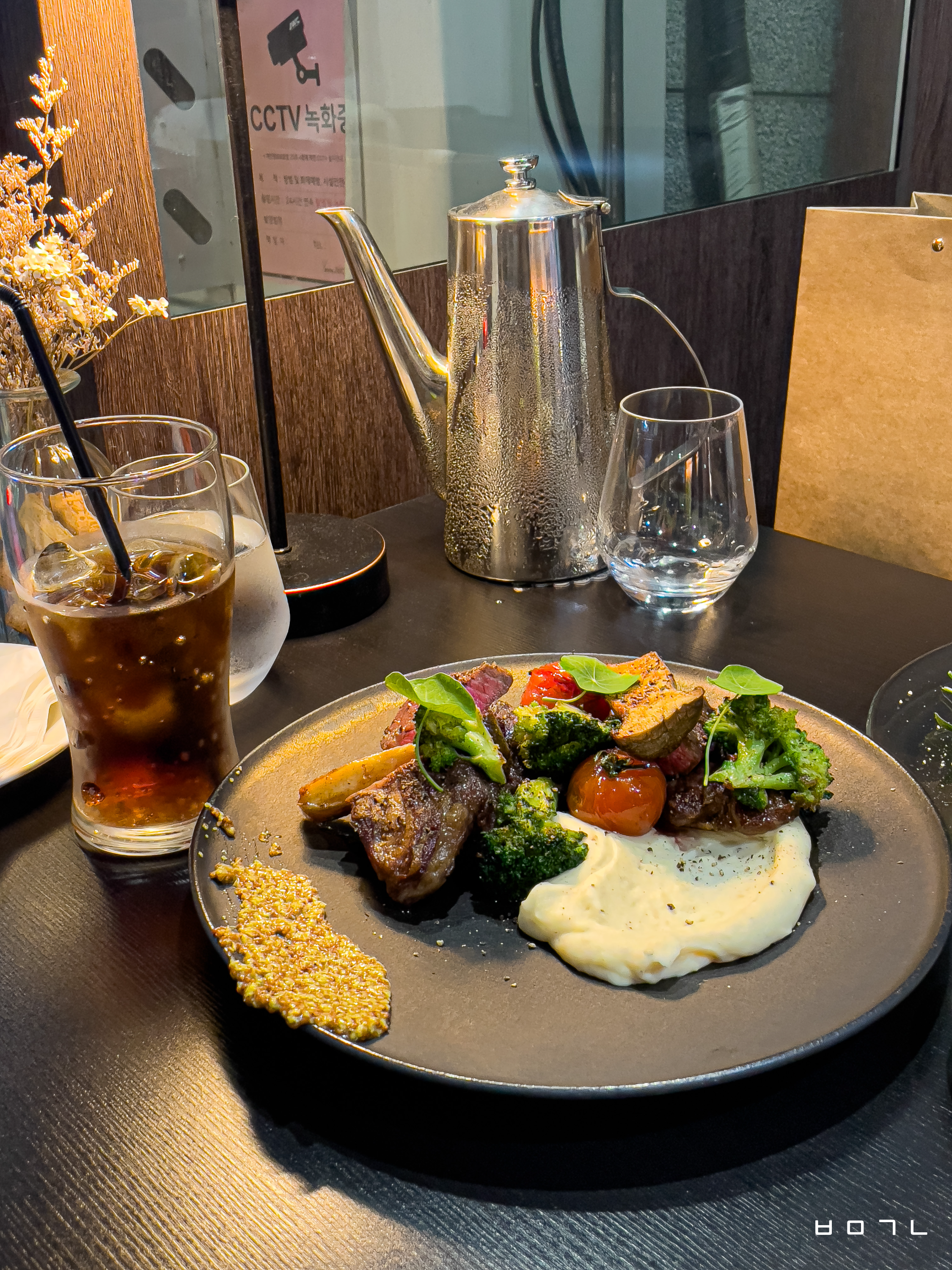 피오니 파스타바에는 메인 메뉴로 살치살 스테이크가 있고,