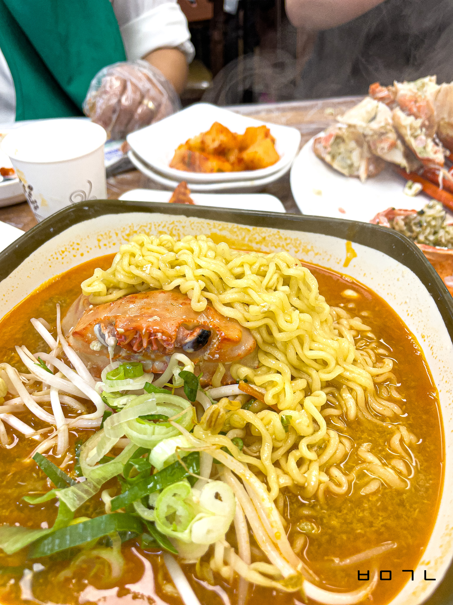 전날 술은 안 먹었지만 숙주와 홍게로 칼칼~ 시원하게 우려진 라면 국물 한 숟가락이면 속 다 풀리져?