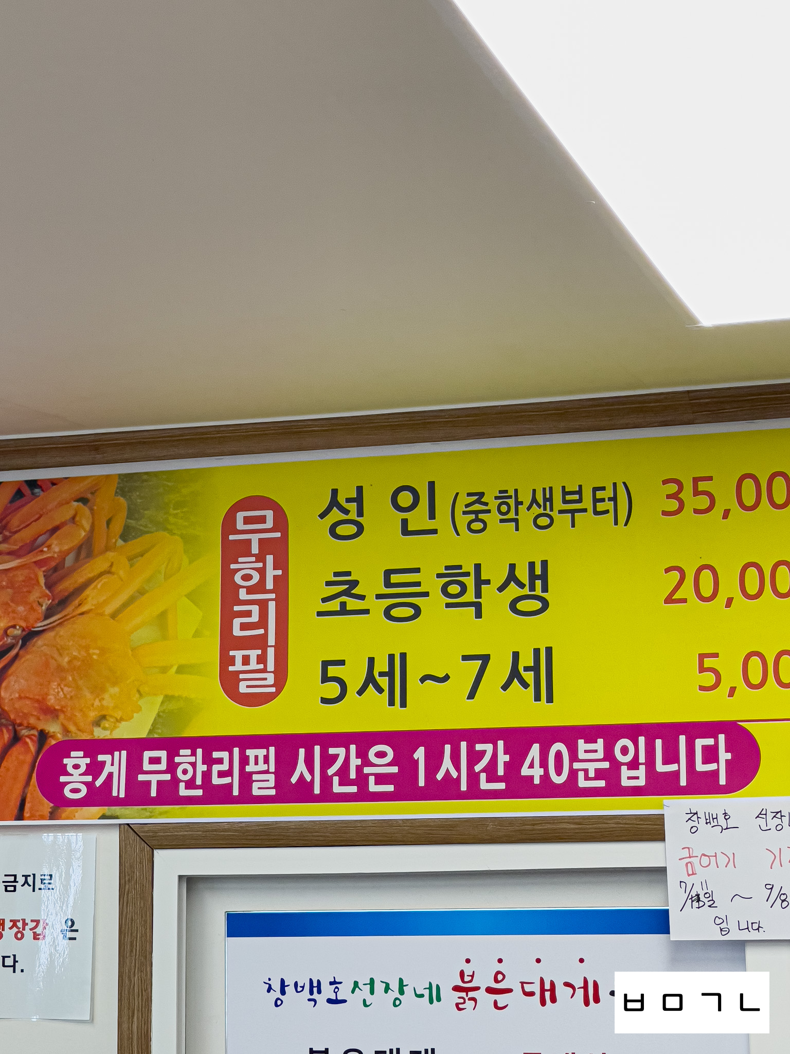 창백호선장네 홍게 무한리필 금액은! 성인 기준 35,000원이고!