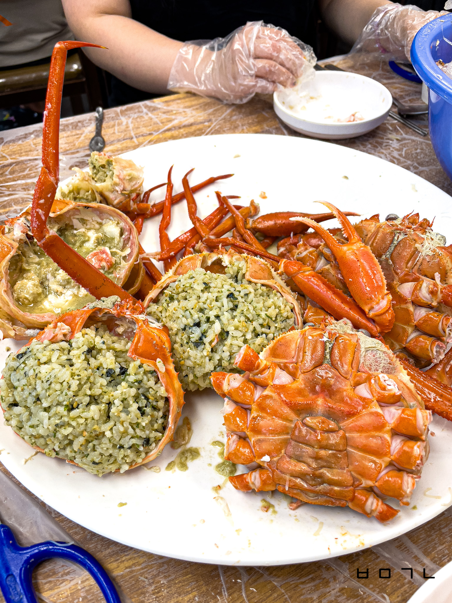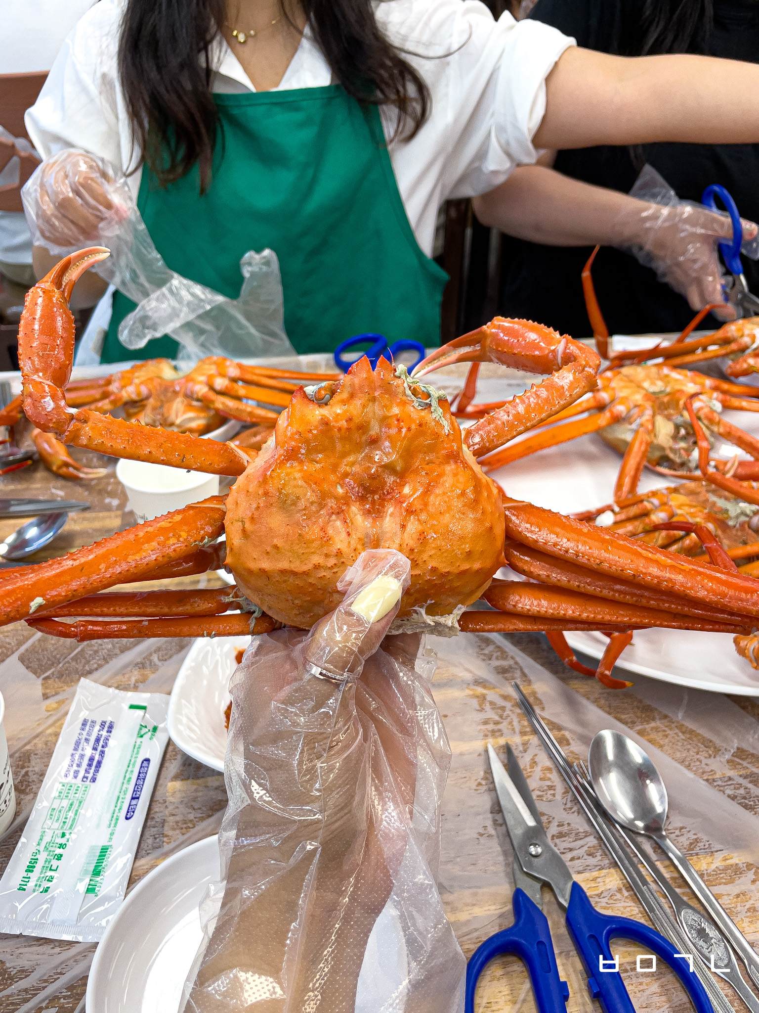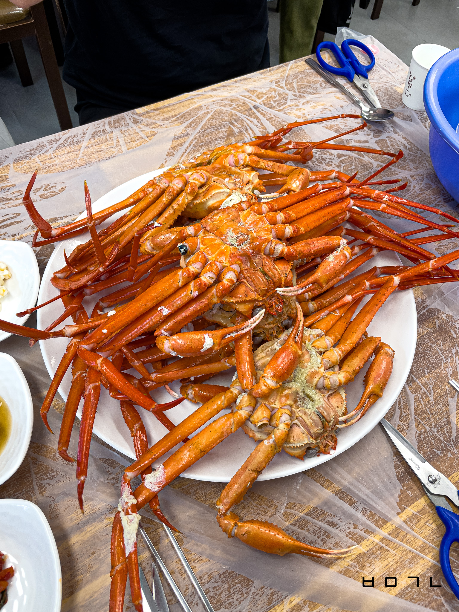 경건하게 가위와 앞접시 세팅을 다 하면 홍게가 나오는데..