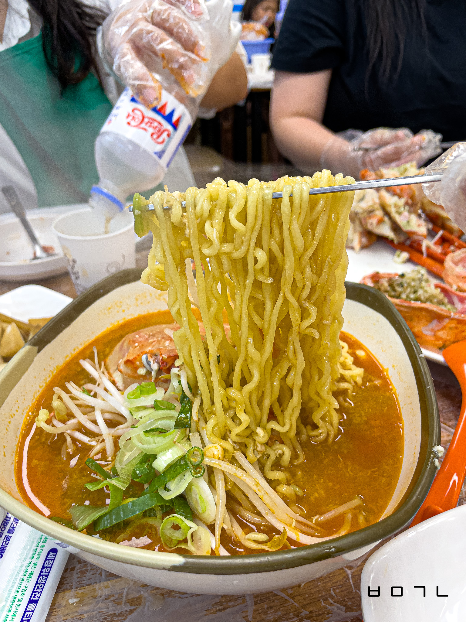 전날 술은 안 먹었지만 숙주와 홍게로 칼칼~ 시원하게 우려진 라면 국물 한 숟가락이면 속 다 풀리져?