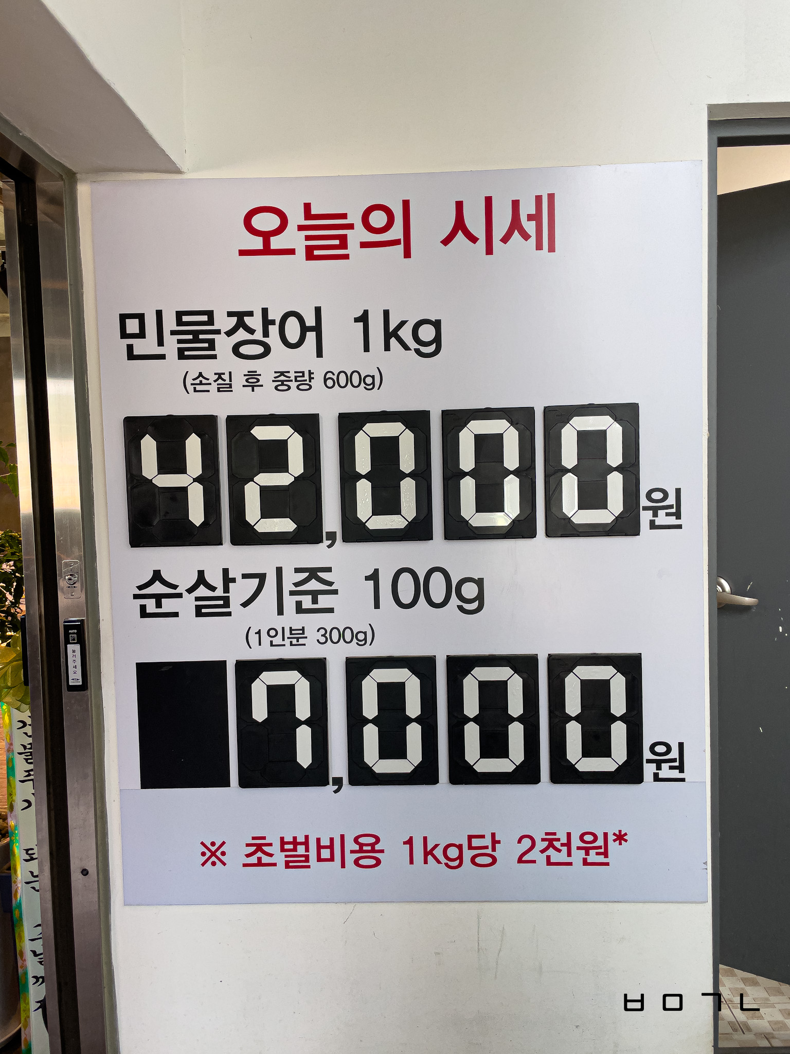 제가 방문했을 때의 장어 시세는 kg 당 42,000원이었습니다