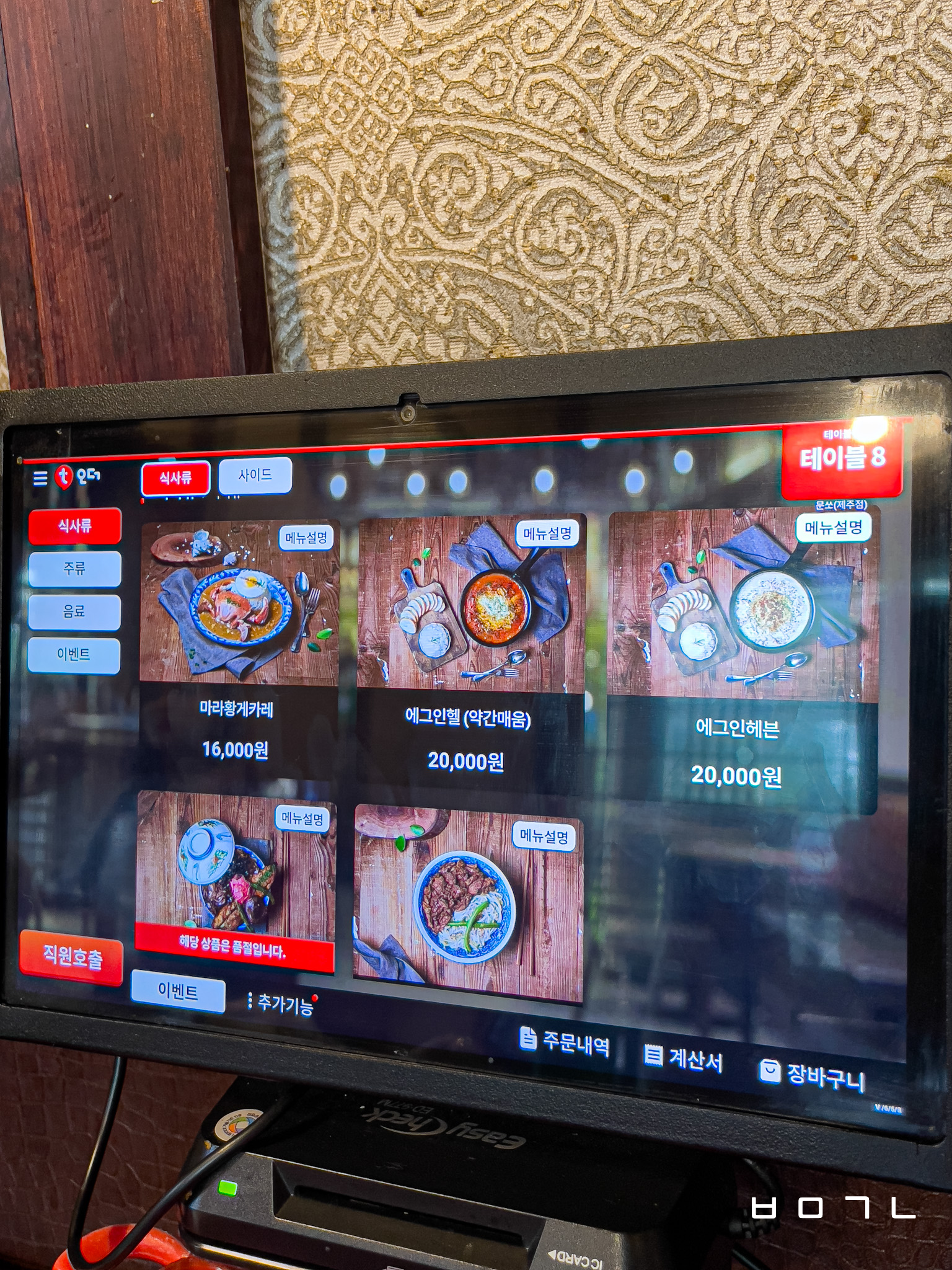 각 테이블에는 키오스크가 설치되어 있고