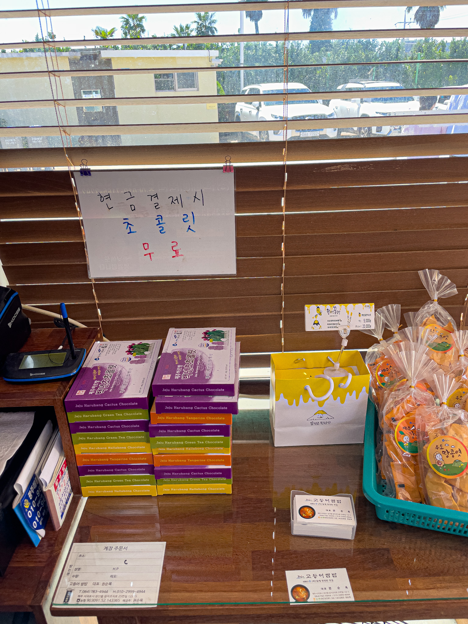 식사 후 현금으로 결제 시 제주도 초콜릿을 선물로 주시더라고요!