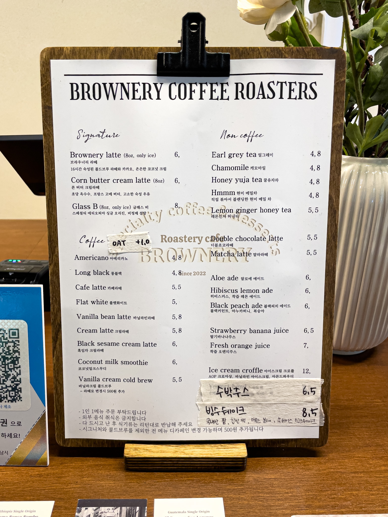 디저트는 먹지 못하고..ㅠㅠ 시그니처 메뉴인 브라우너리라떼와 오리지널 라떼만 시킬 수 있었어요..ㅎㅎ