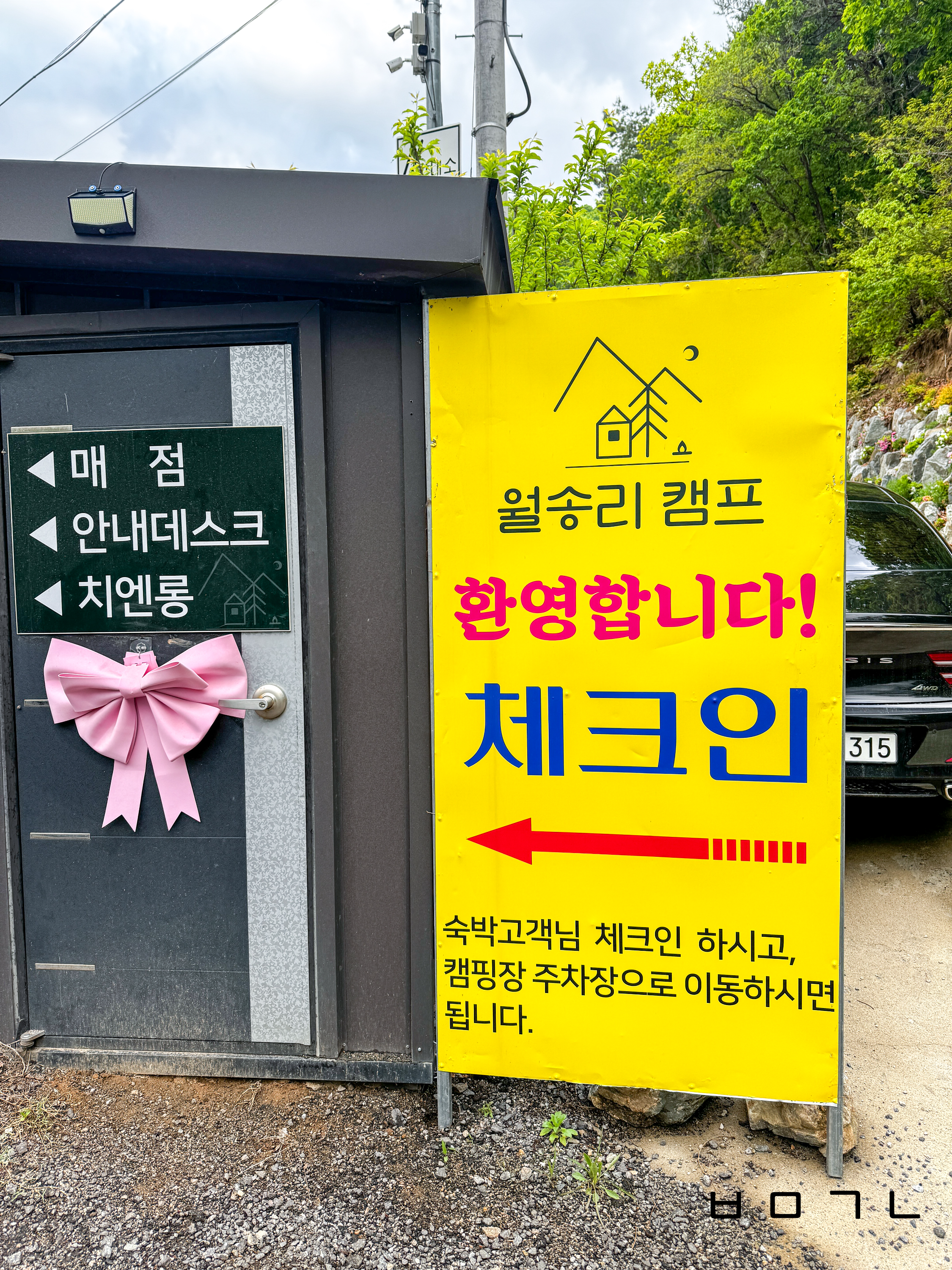 캠프동에서 주차장으로 들어가는 입구가 리틀빗 좁아여~