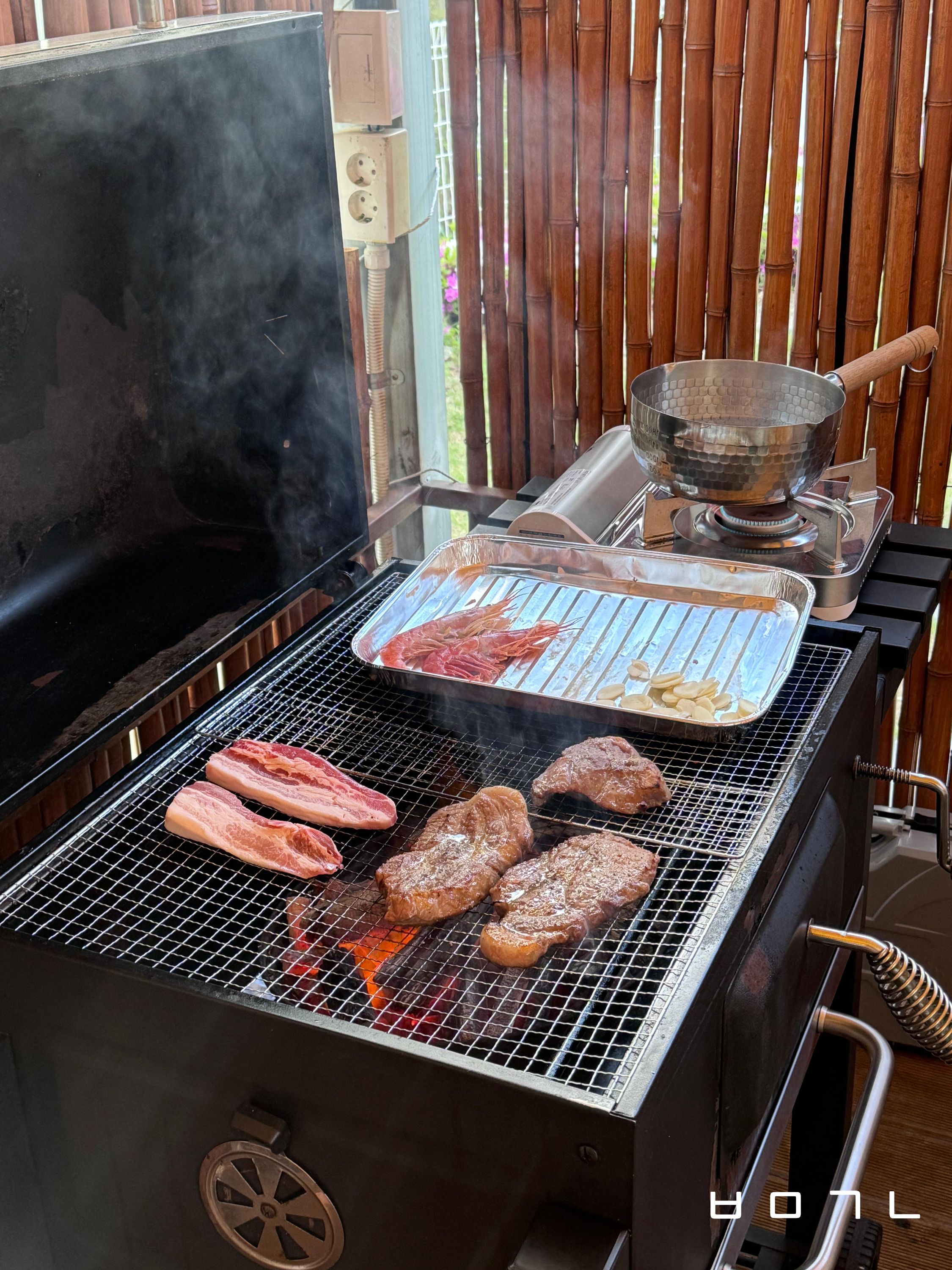 가격도 가성비인데 각종 고기와 라면, 물, 조식까지 완벽하게 제공해준다고~!