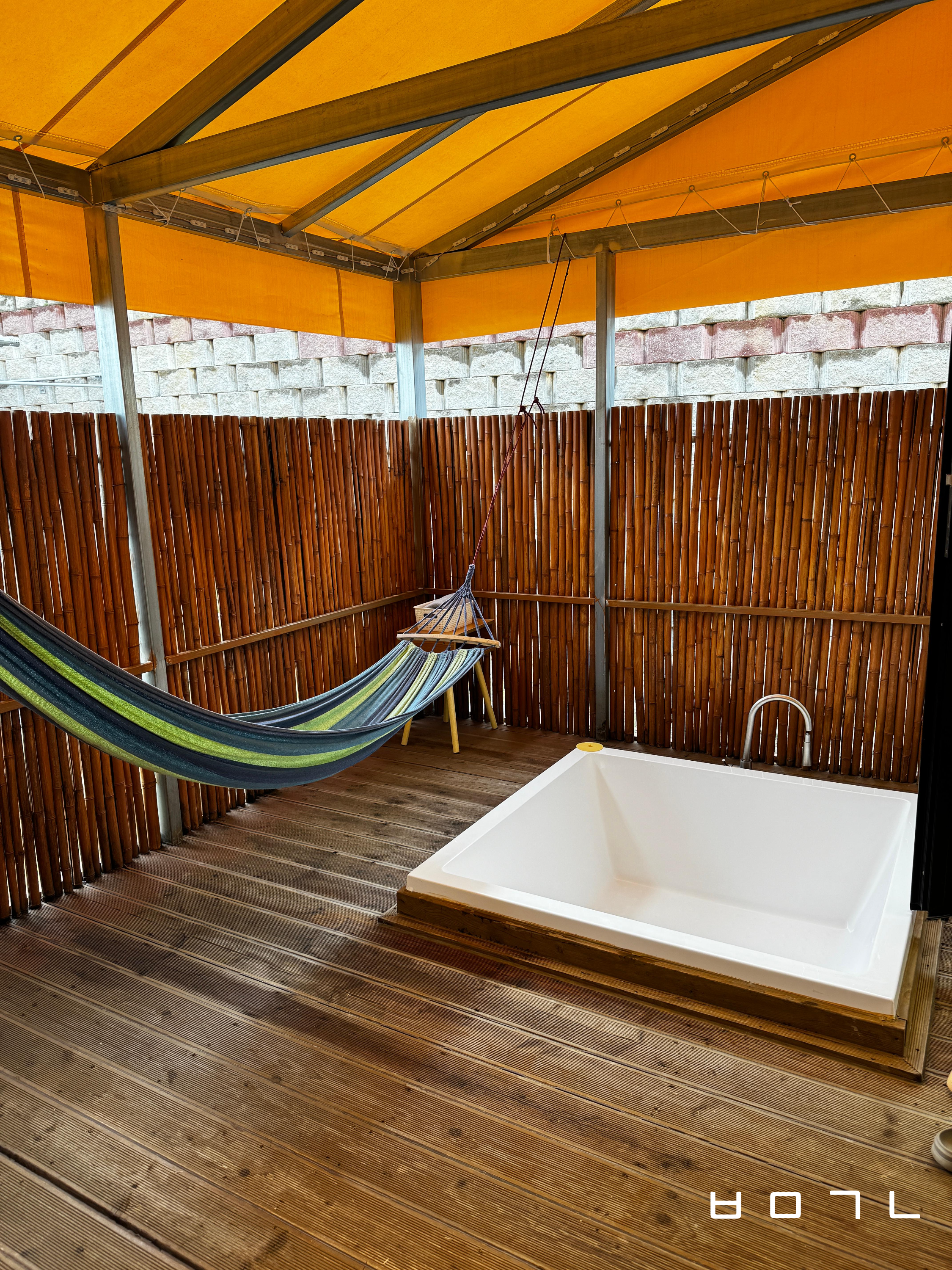 카라반 내부에 프라이빗한 자쿠지와 해먹이 있다는 점~